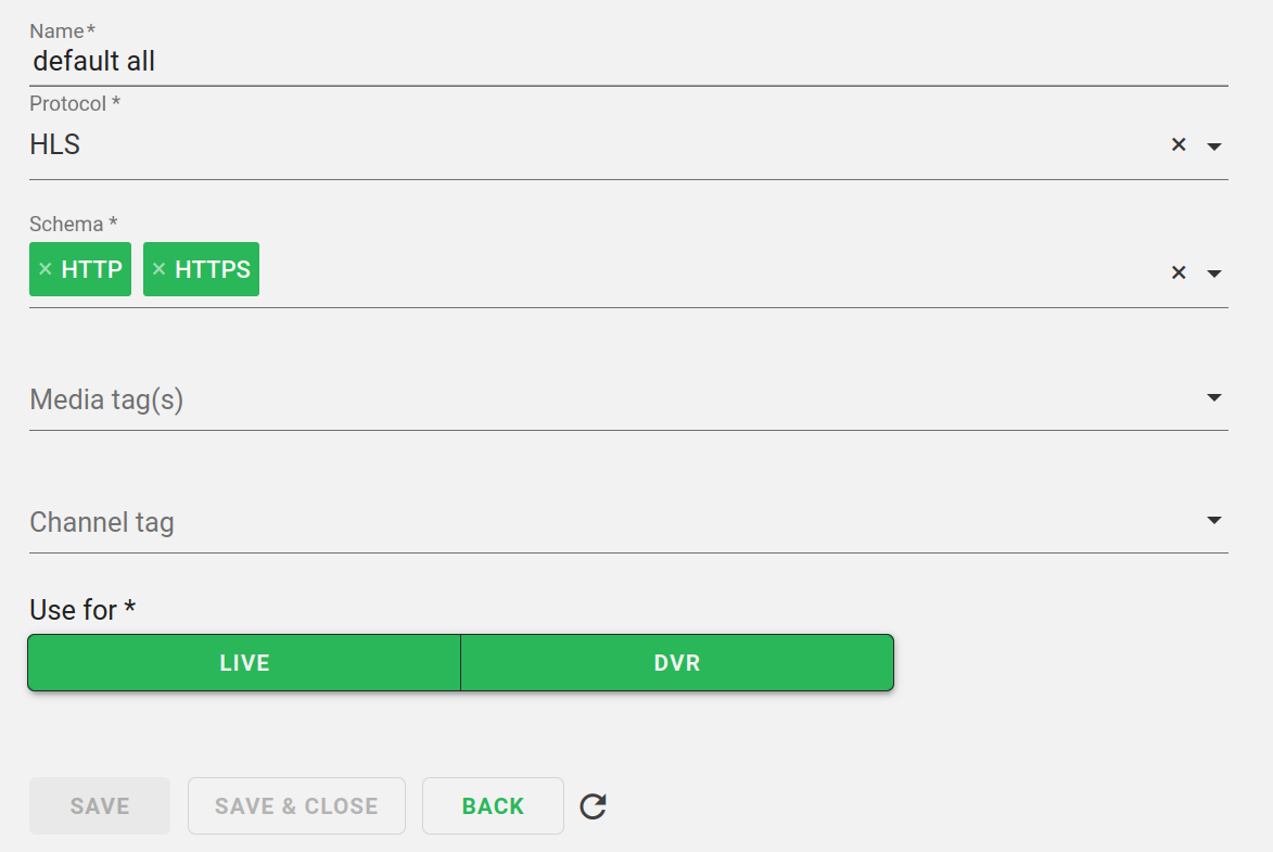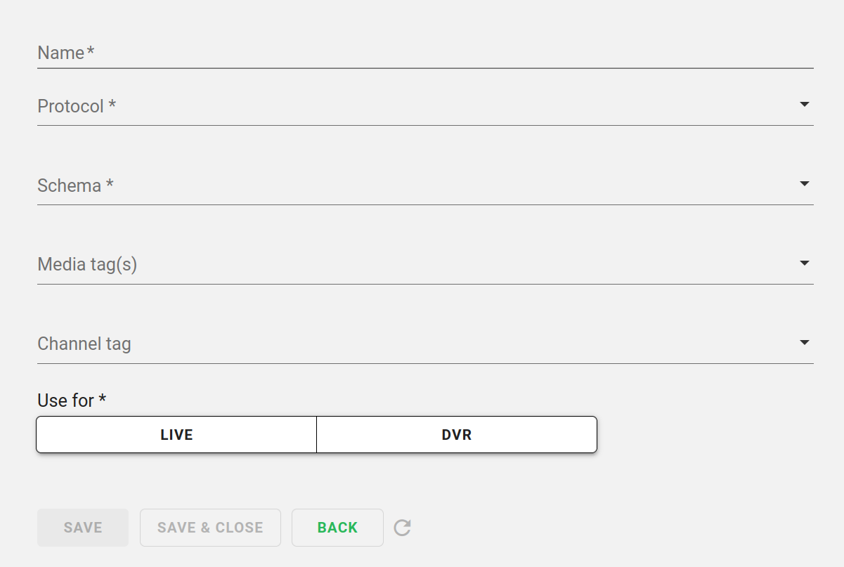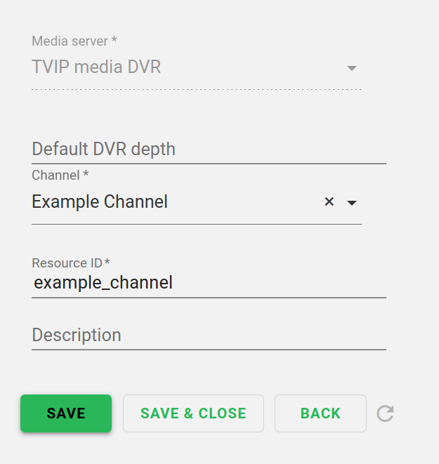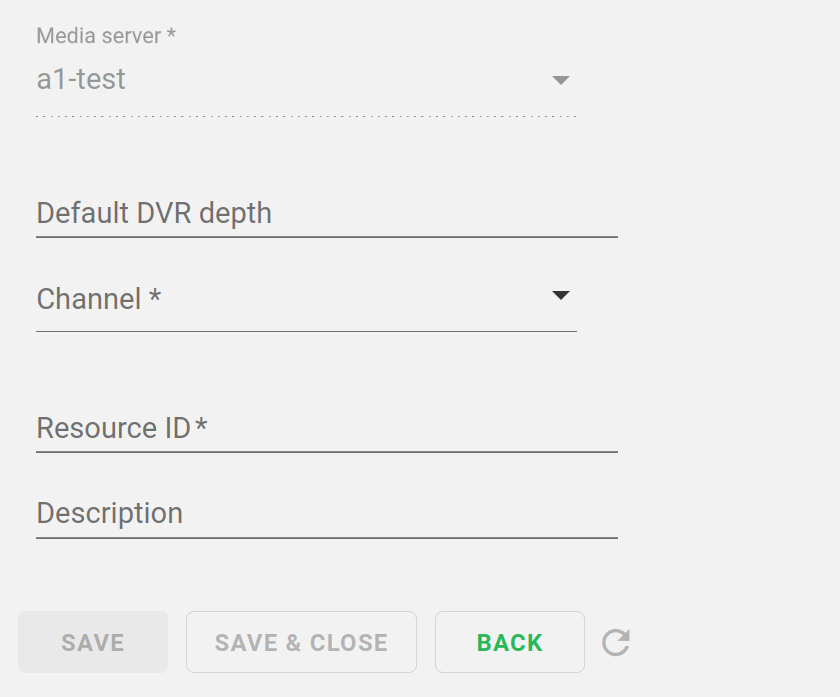 System name of the channel on the media server. It’s used when creating a link to the stream - in the URL pattern the <resource> attribute is replaced with its value. This field is mandatory.