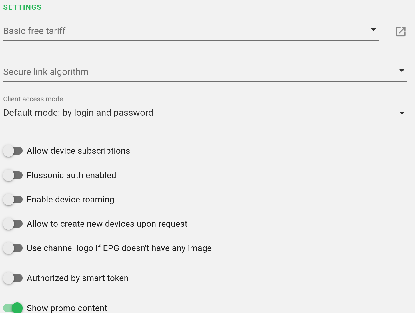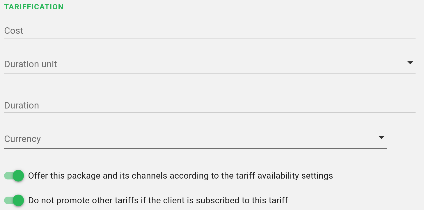 Offer this package and its channels, according to the tariff availability settings - this toggle is responsible for offering channels from this tariff to subscribers in the general list as promo channels.