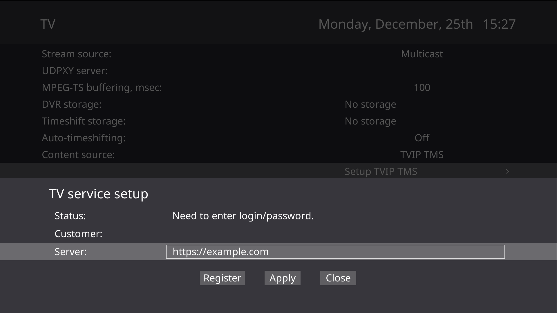 Подключение к TMS на TVIP S-Box